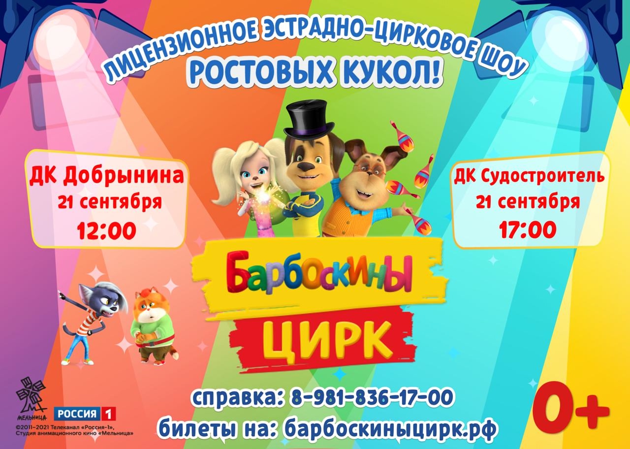 Веселая увлекательная история о том, как Барбоскины решили организовать свой собственный цирк и что из этого получилось. Игровое развлекательное шоу ростовых кукол. Цирковые номера традиционных жанров, трехметровые пневмороботы, лазерная анимация, иллюзионные трюки, и конечно непосредственное участие зрителей, веселый смех, удивительные открытия. Шоу поставлено по мотивам мультсериала «БАРБОСКИНЫ» Телеканал «Россия-1», Студия анимационного кино «Мельница»